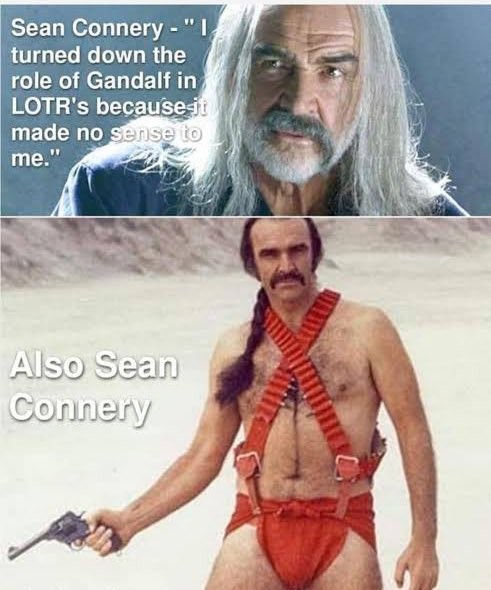To be fair to Connery, Zardoz was right after 007. He was type casted and nobody would hire him. He had to do something different to get new work. Also, Zardoz is legit a good movie… If you get past the weird and laughable aesthetic choices, the plot is a decent sci fi plot.