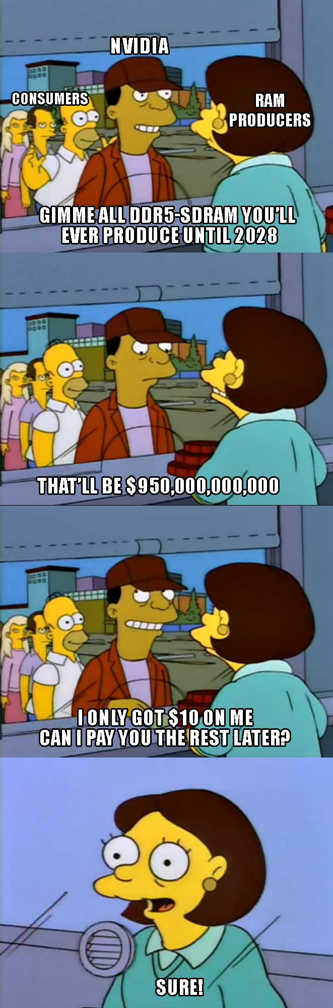 The OpenAI IOUs are all covered by NVidia’s "will invest"s. NVidia doesn’t have extra to spend around.