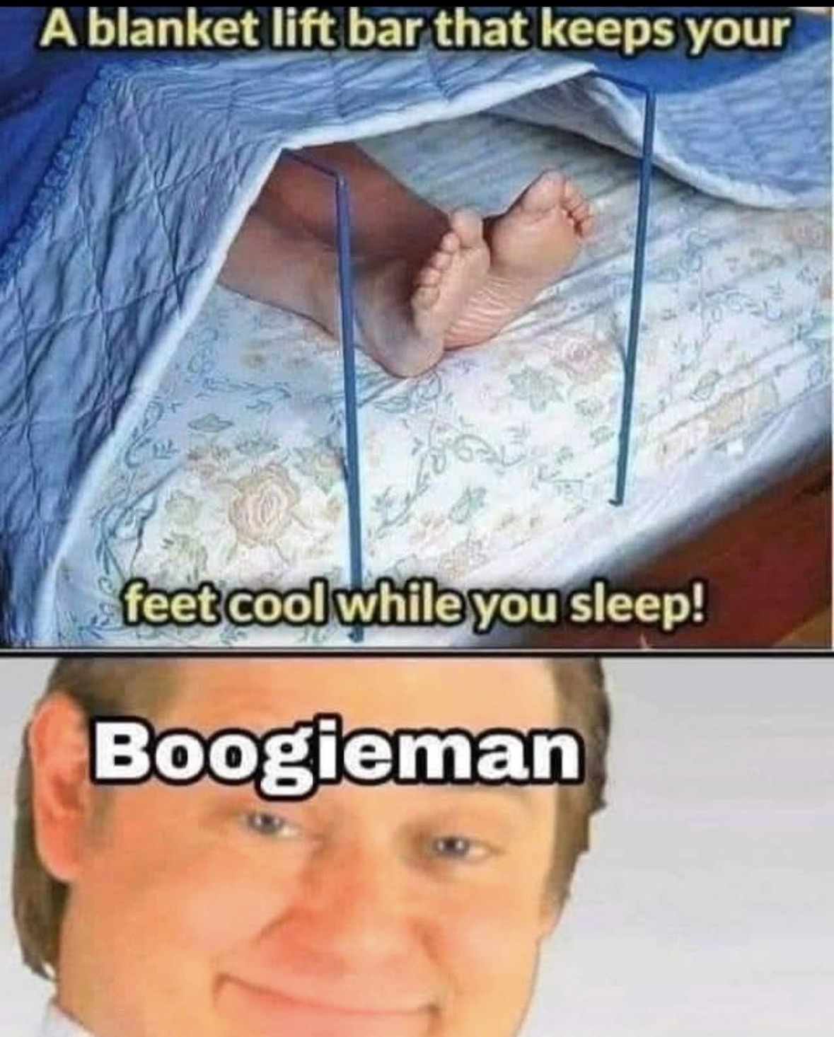 100%. Those complaining about the Boogie Man have never tried to sleep with the weight of a thin sheet on their gout infested toes. I wish the Boogie Man would take me.