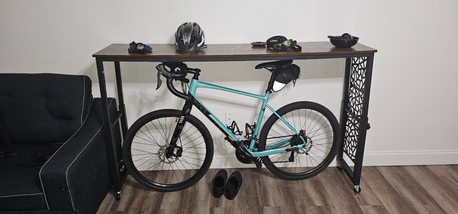 Apartment dweller here, I can’t store it outside and I don’t have a garage, I was getting tired of just having it in the living room so I came up with this slightly better idea.