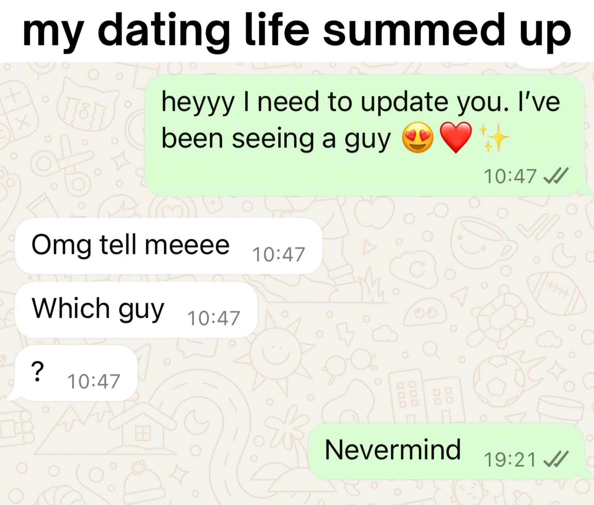 Lmao me @ my partner every time I go on a date and it’s a flop