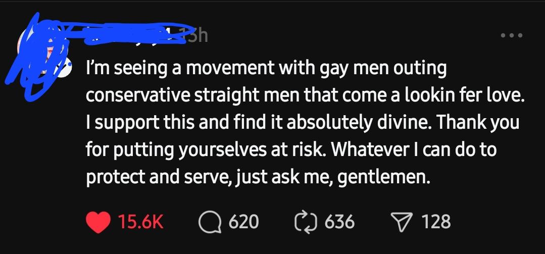I don’t think that outing people is a good idea though. It’s fine to point out that they’re being hypocritical, or refuse them for their views, but outing them seems a step too far, especially if it’s retaliatory.