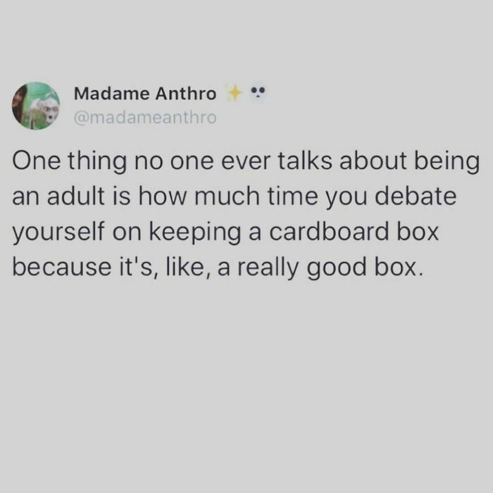 Gotta love Lemmy for premium shitposts like this, where one gets actual, high-value advice on effective box upcycling in the exploding comments, along with a complimentary, self-conscious chuckle.