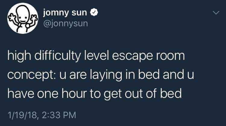 That was this morning. I texted everyone that I’d be late and went back to sleep. I failed the escape room, but it was worth it.