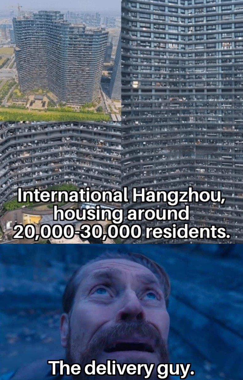 American Fork, Utah, has 33k inhabitants on 19 square kilometres. The building in the OP has 20-30k inhabitants on 0.04 square kilometres, which would mean that if you house all of American Fork like that, you’d get between 18.92 and 18.96 of untouched nature in return.