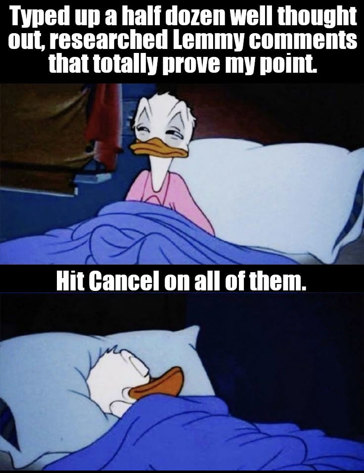 This infuriates me when I accidentally do it. I maintain a Lemmy client that will save your work as long as you don’t hit reload. I’m working on an update that will recover the comment if the network request to submit the comment fails. Sometimes I’m on the fence about posting a comment, but even if I hit cancel my work is still saved.