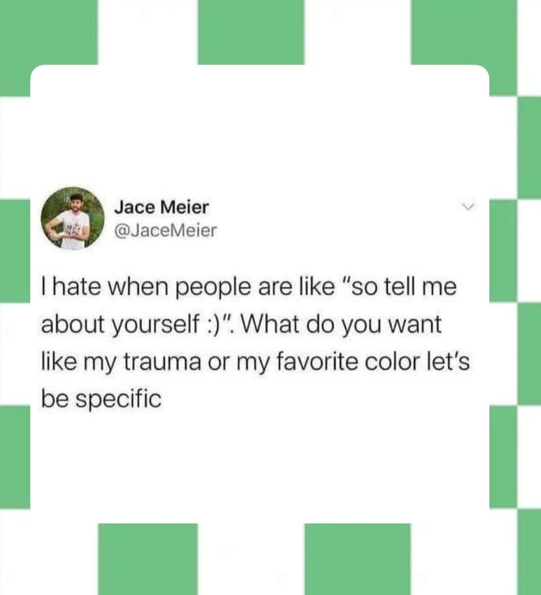 Just don’t dive a mile deep into your hyperfixation from the jump, as that is generally offputting for mixed company.