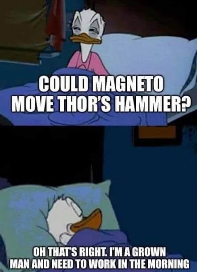 minus-squareBrown5500@sh.itjust.workslinkfedilinkarrow-up0·2 years agoIt has always bothered me that he used super strength magnetic fields to manipulate non-magnetic metals. yes, that is the thing in the xmen universe that breaks reality for me, everything else is fine