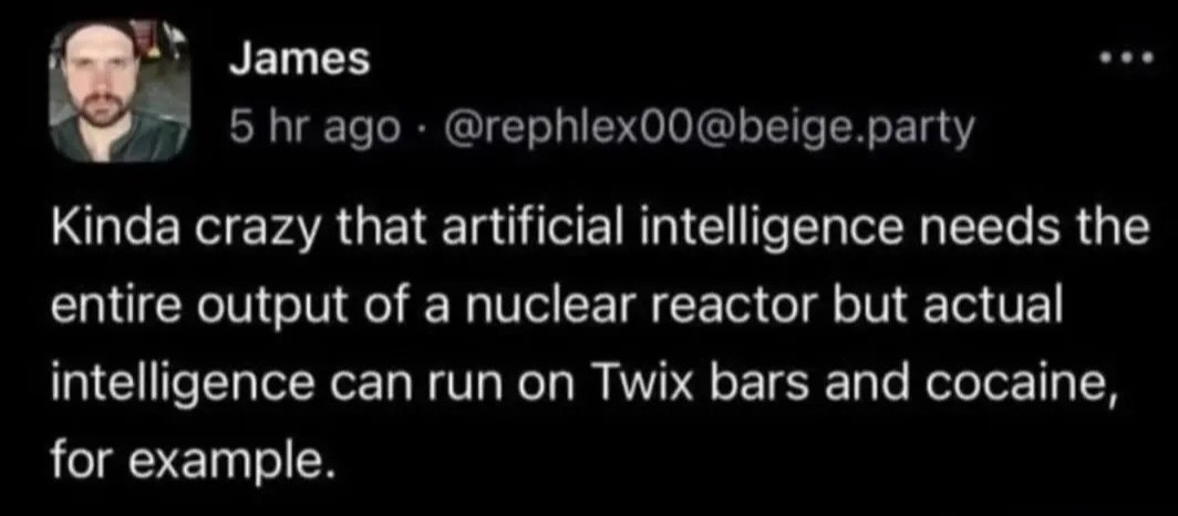 have we tried giving the AI Twix and cocaine yet? perhaps we just haven’t given it the chance. not sure where you’d put it in, maybe just smash it into the server rack?