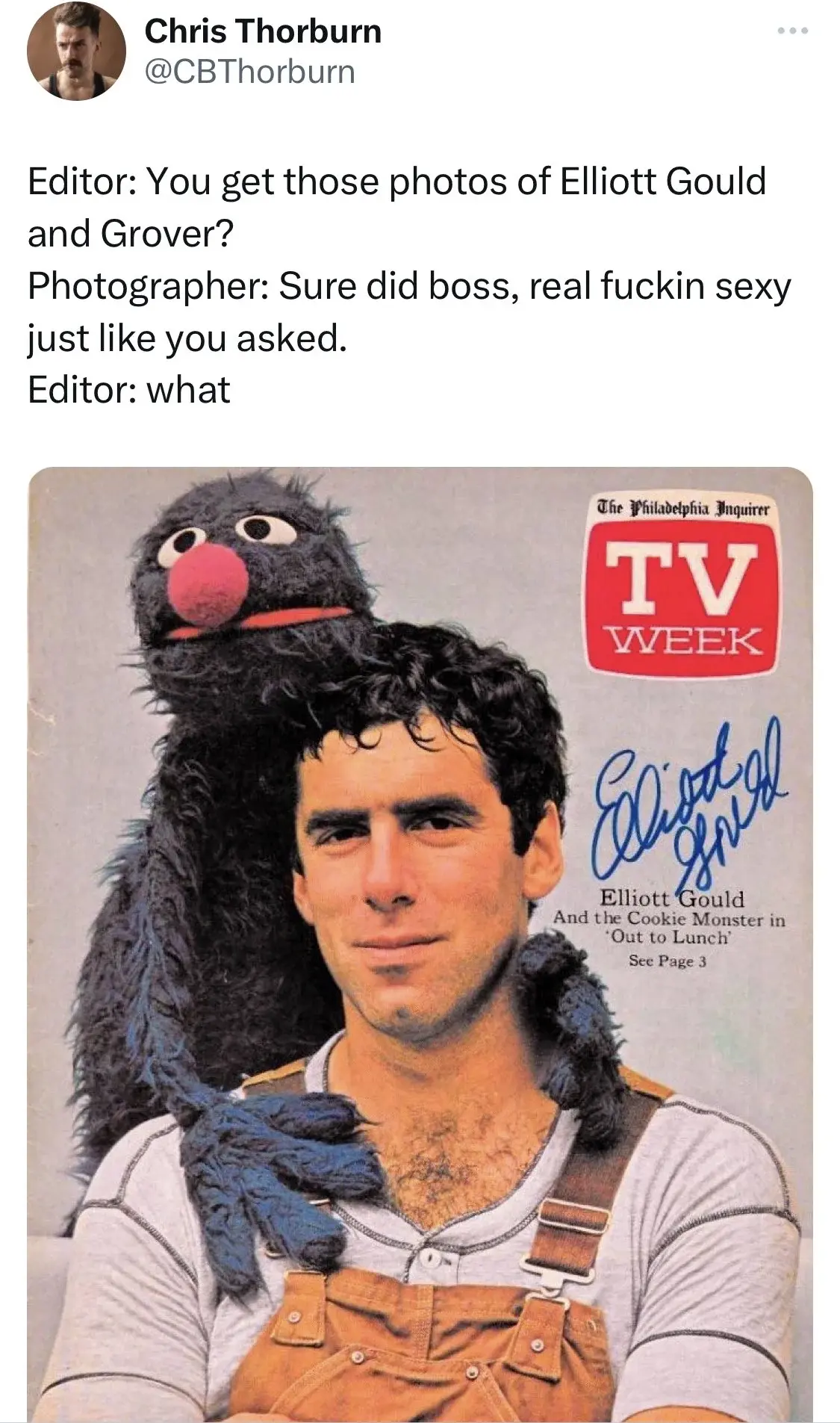 I don’t like that the caption says Cookie Monster but that’s clearly Grover, a far superior muppet.