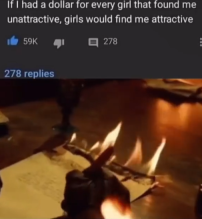 Yeah I don’t think Rodney Dangerfield, we’re he alive today, would accept the “incel” brand so easily. His comedy and attitude are different. That’s why it doesn’t deserve an “incel bullshit” comment. It’s simply a funny self-depricating type joke…