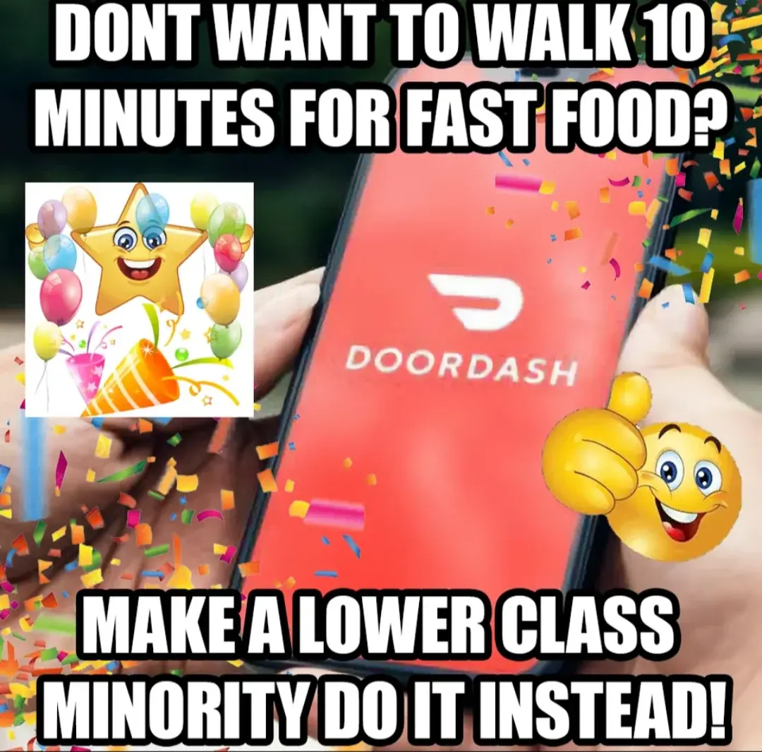 I think the problem here is that I didn’t make the meme and wouldn’t have made it about minorities. I think it’s bad that someone has to deliver food for a bad living, no matter the race.