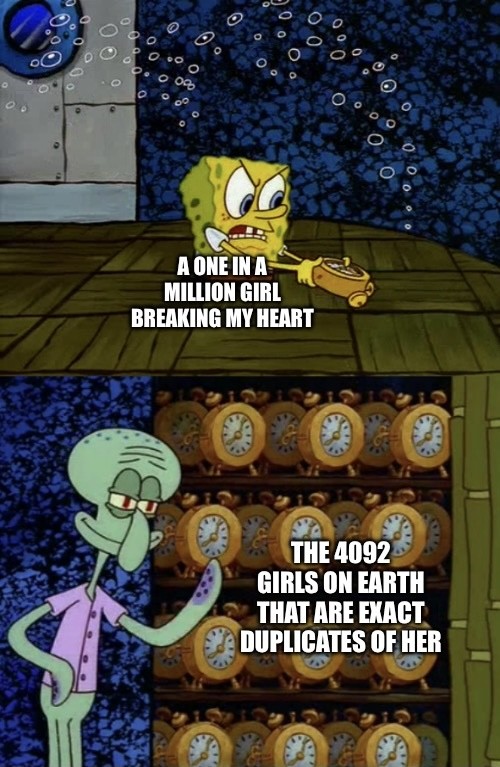 Of course, looking at relationships this way of odds and numbers and ratios is utter horseshit, but ya’ll kids fantasizing about anime waifus and werewolf boyfriends and crying yourself to sleep because you can’t figure out the “magic trick” to being liked, just loooove to look at your lives in the lens of numbers and rules and systems.