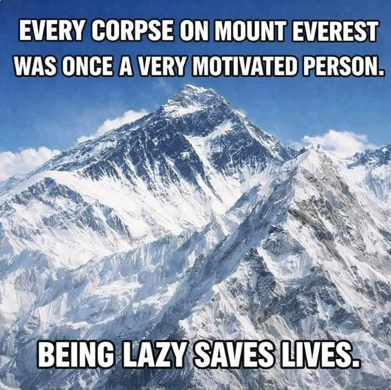 Laziness also generally leads to smarter solutions. Motivated people climbed mountains while lazy people were inventing the helicopter.