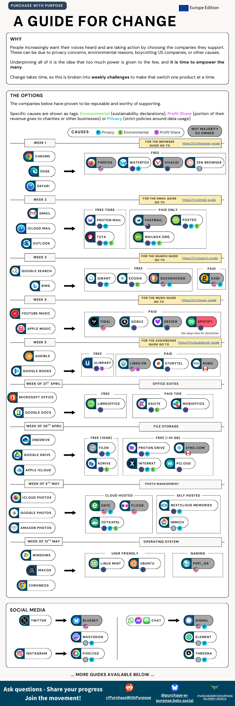 I decided to highlight rather than remove, so people can see how it compares to their US counterparts. It is also partially due to the effort required to maintain another full version. The most significant driver for this is to encourage people to move away from Big Tech, and a secondary driver is to move to EU-based tools.