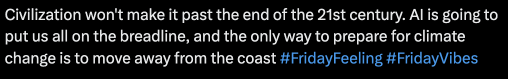i dunno man if you turn off the news and only look at headlines occasionally, the world doesn’t seem like it’s falling apart. i mean it definitely is, but from where you’re standing everything seems fine. works for me
